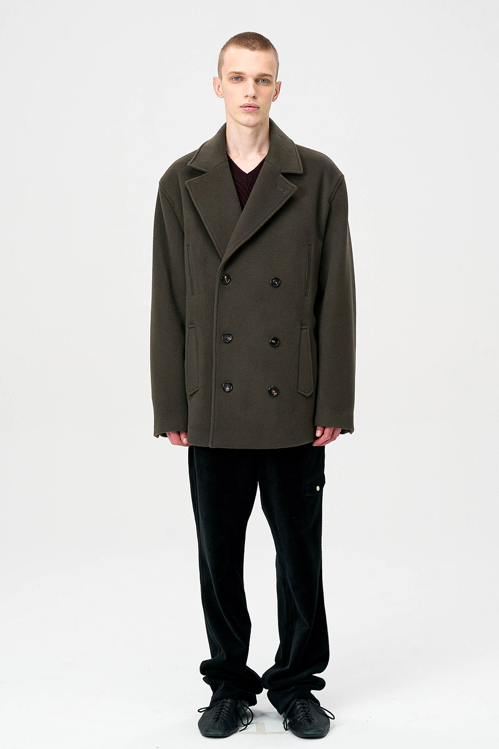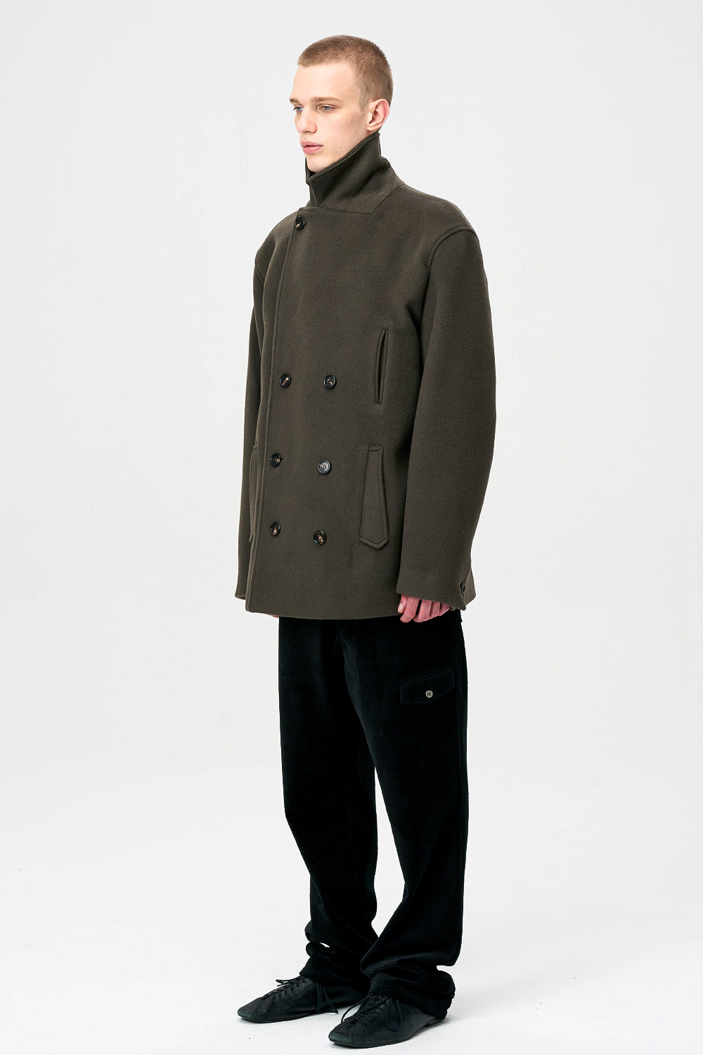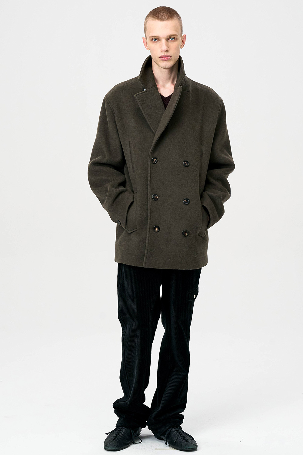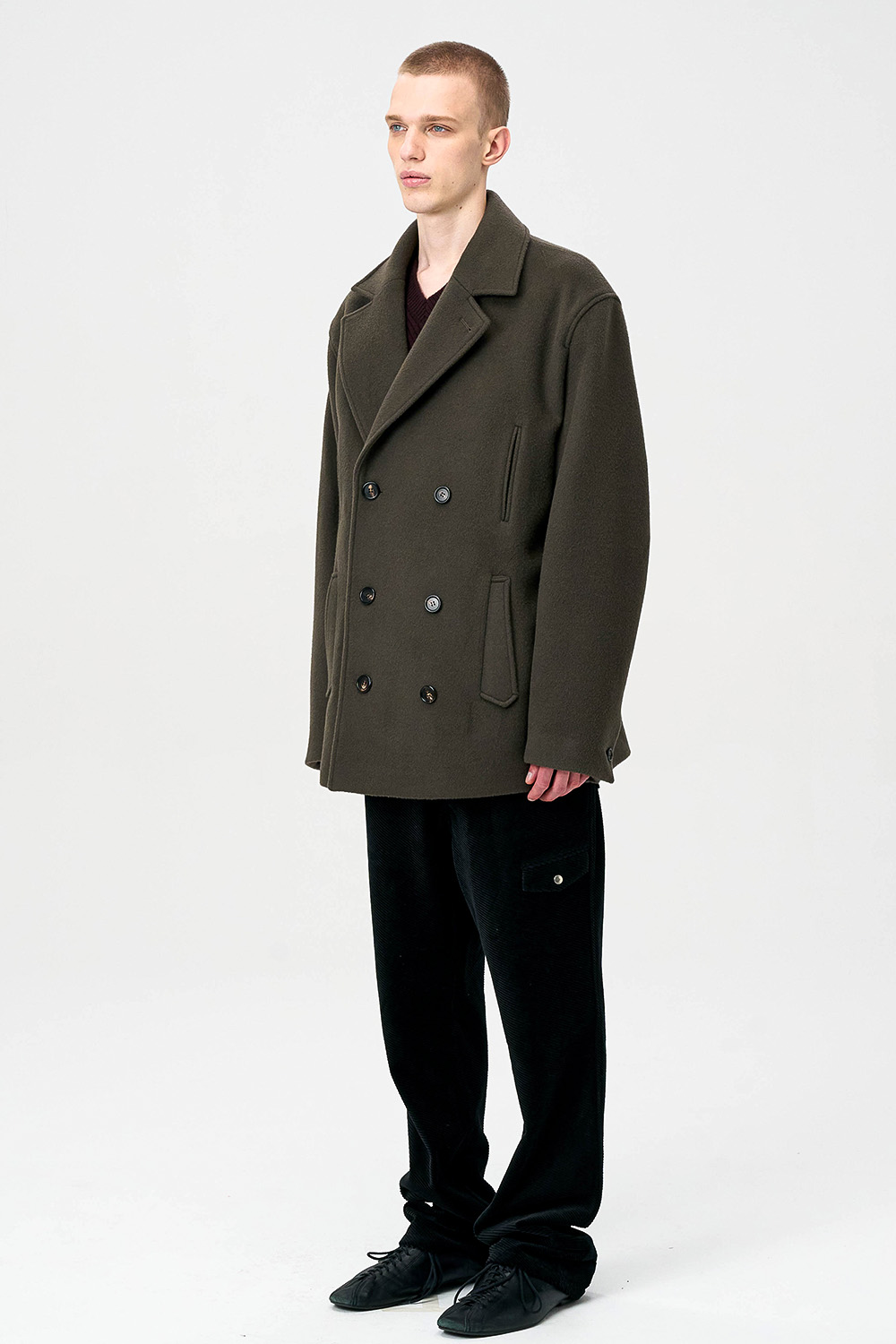 전통적인 피코트 구조를 현대적으로 재해석한 실루엣으로,