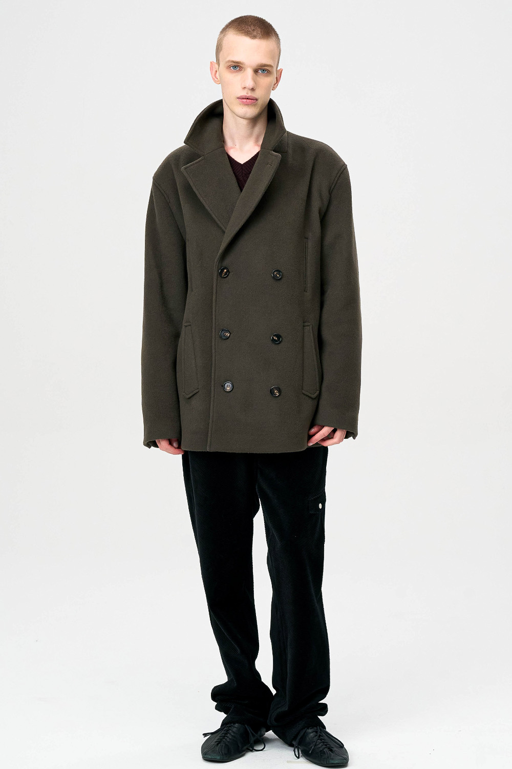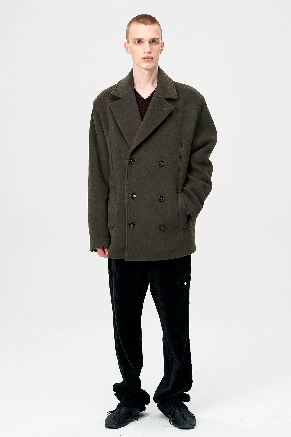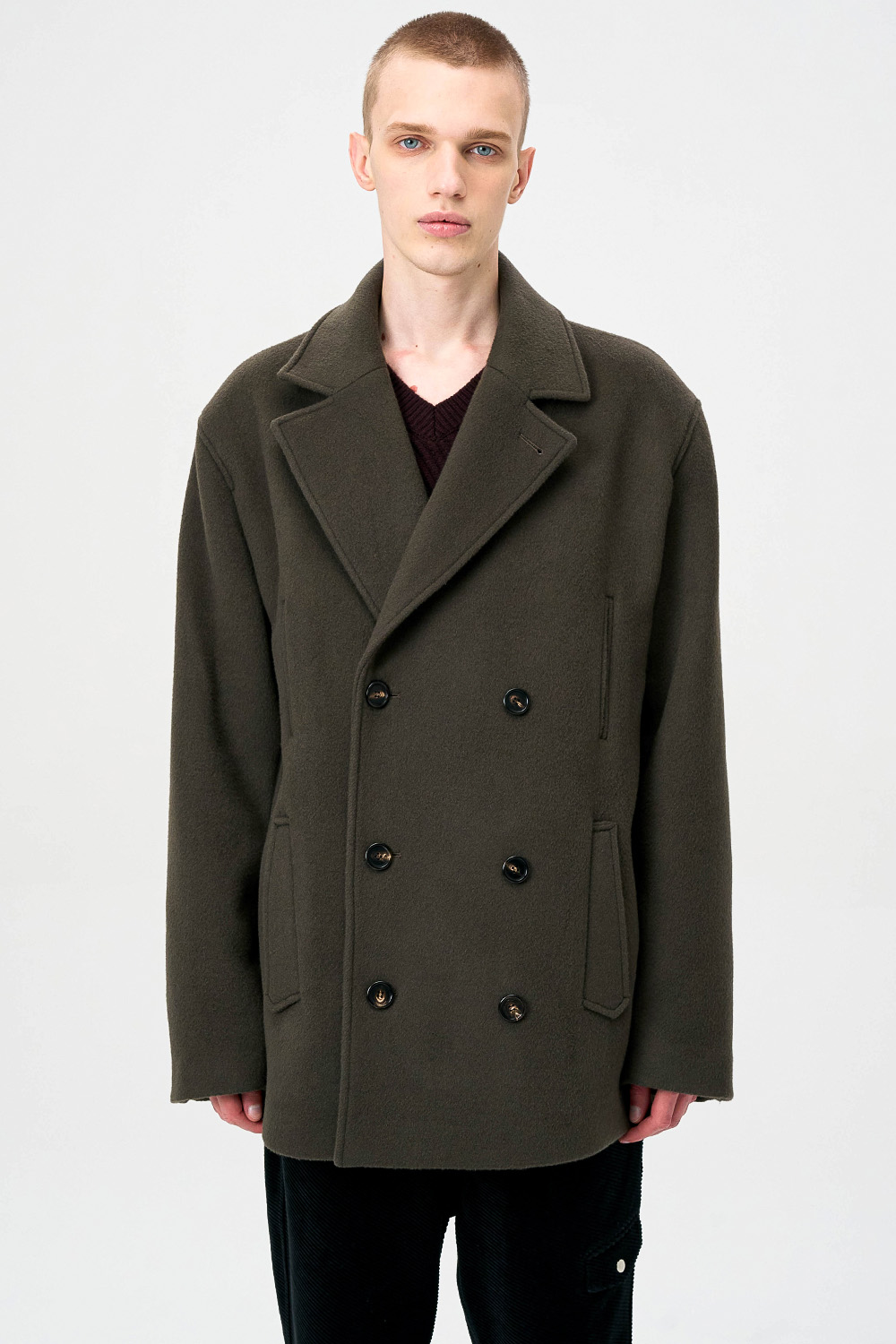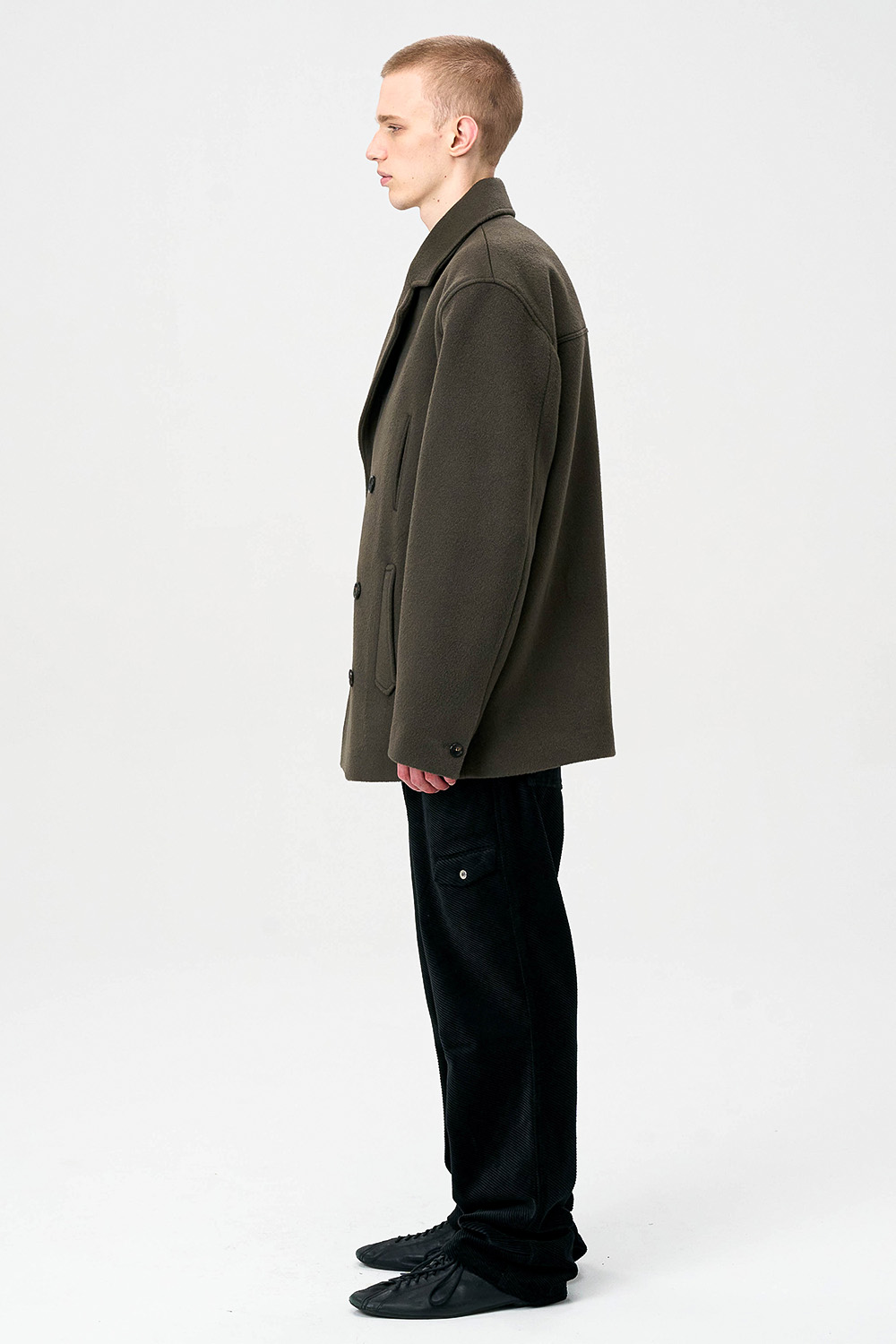 전통적인 피코트 구조를 현대적으로 재해석한 실루엣으로,