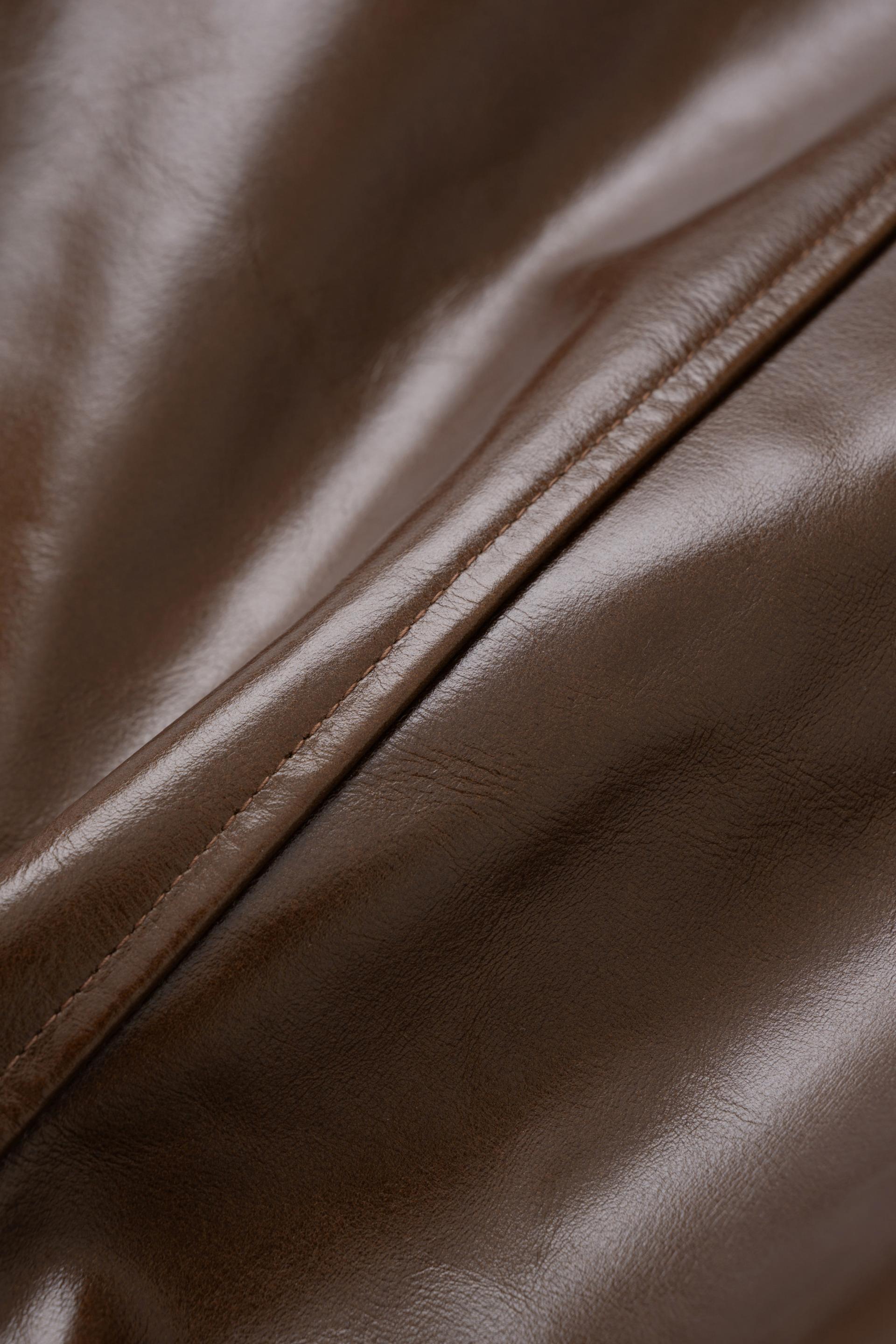 동물성 소 원피를 크롬태닝하여 광물성으로 성질을 바꾼뒤 염색으로 컬러를 맞추고, 밀링작업을 통해 가죽을 부드럽게 가공하기때문에 좋은 터치감과 은면 처리시 오일처리하여 은은한 투톤이 나는게 특징입니다 이번 시즌 처음으로 선보이는 PERMANENT LEATHER JACKET은 평생 하길 바라는 마음으로 제작하였습니다. 딱딱한 소가죽이 처음 착용시에는 어색할 수 있지만 착용하시면서 에이징되어 생기는 주름과 부드러움을 느끼실 수 있는 매력적인 자켓입니다. "PERMANENT"라는 주제에 맞게 오래 사용할 수 있도록 고품질의 가죽을 사용하였습니다. 밀링작업와 오일처리를 통한 은은한 투톤이 매력적인 자켓입니다.