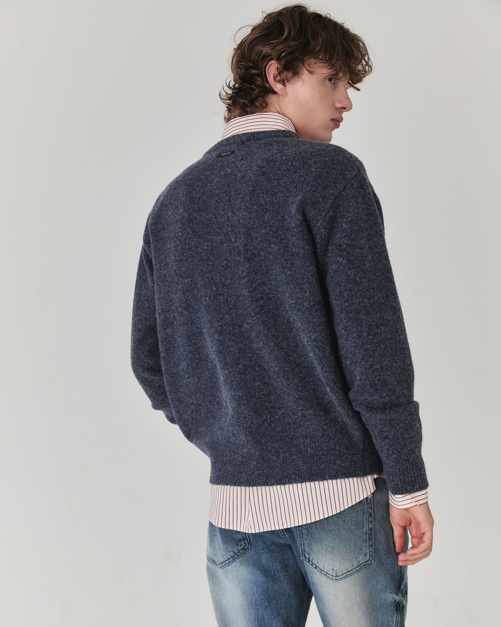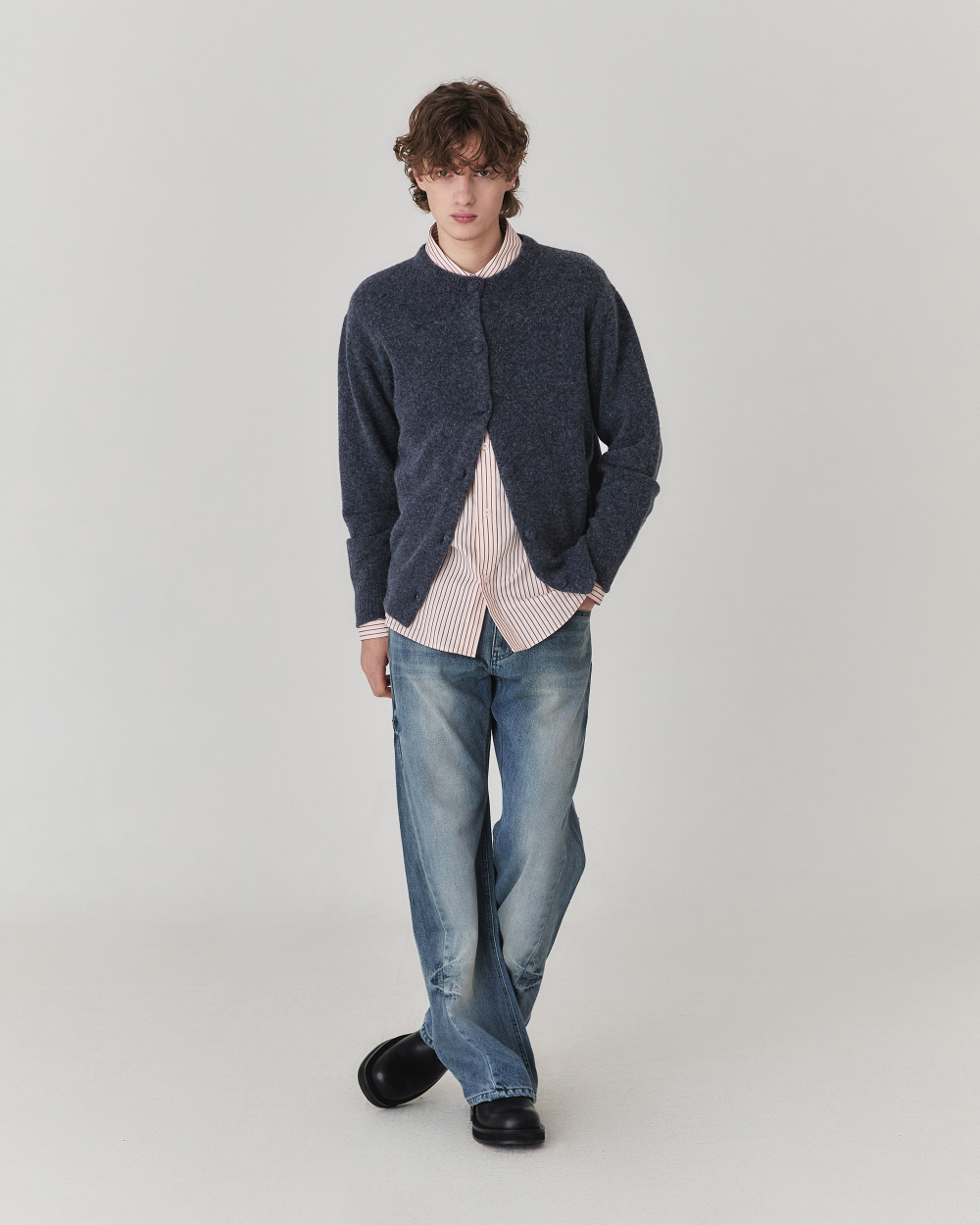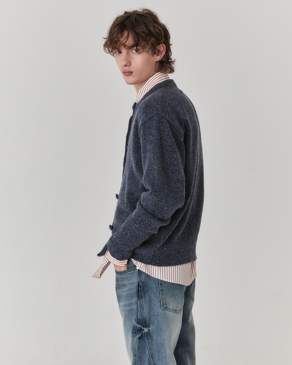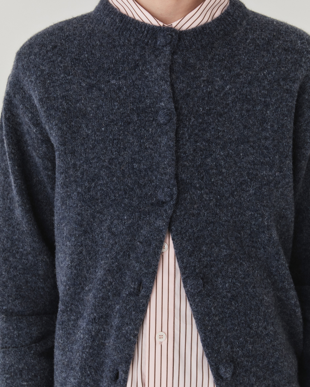 Brushed Wool Round Neck Cardigan_Ash Blue
