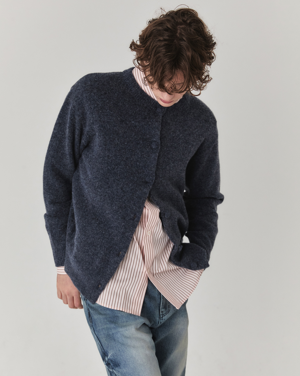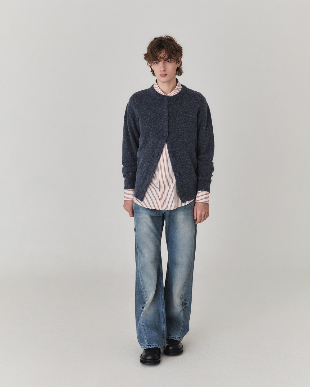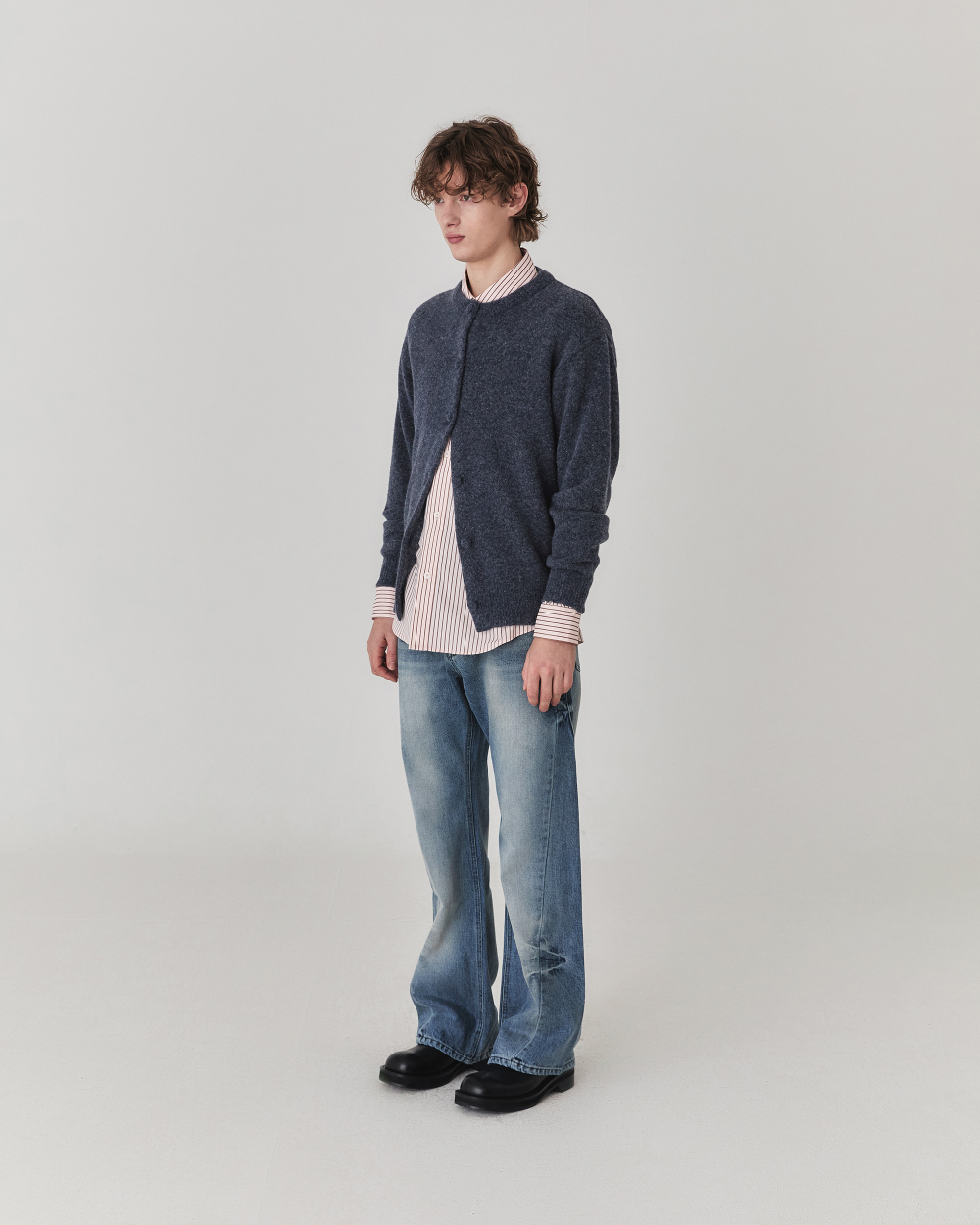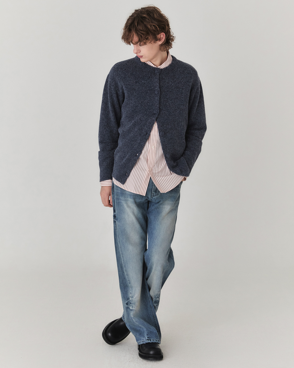 Brushed Wool Round Neck Cardigan_Ash Blue