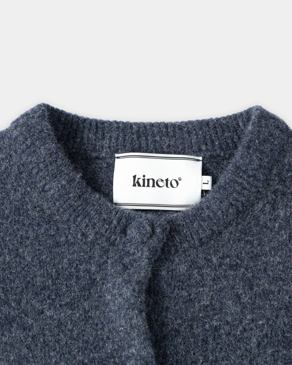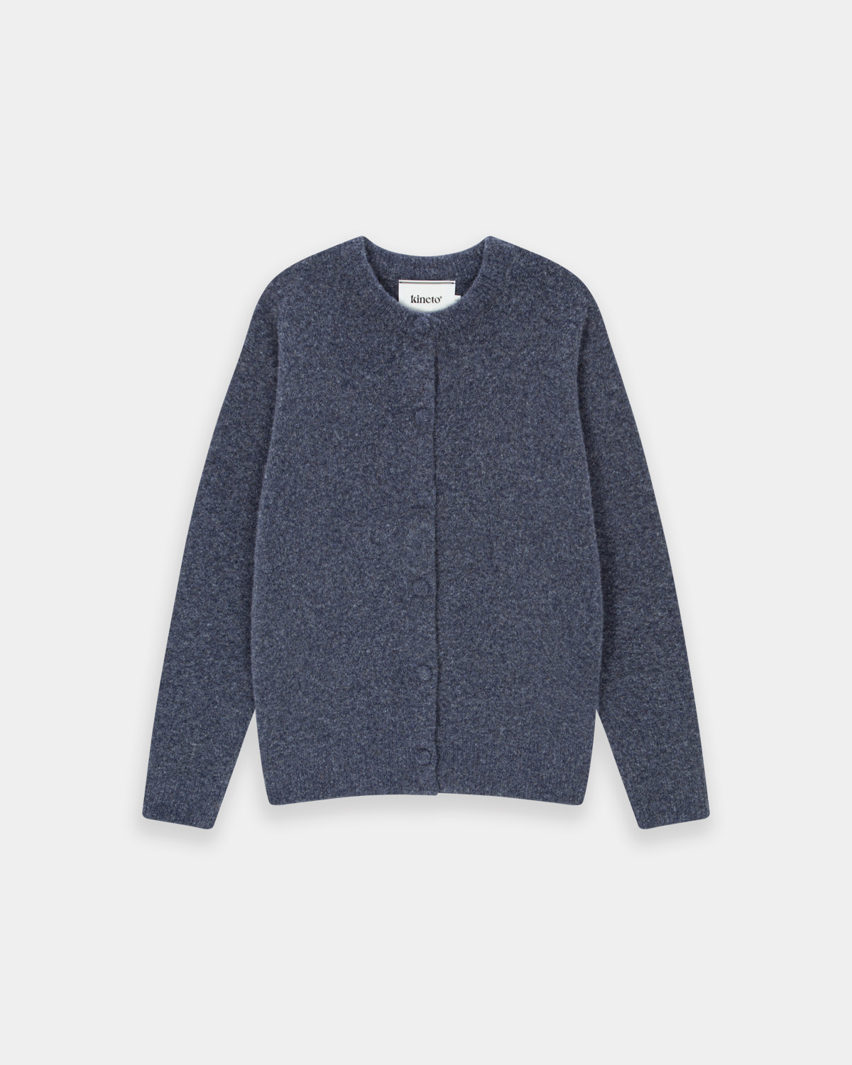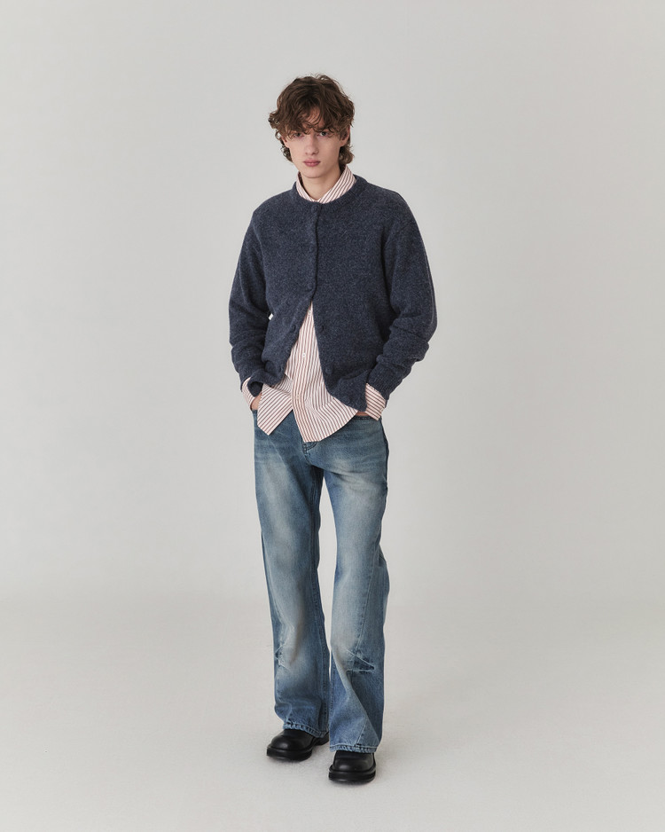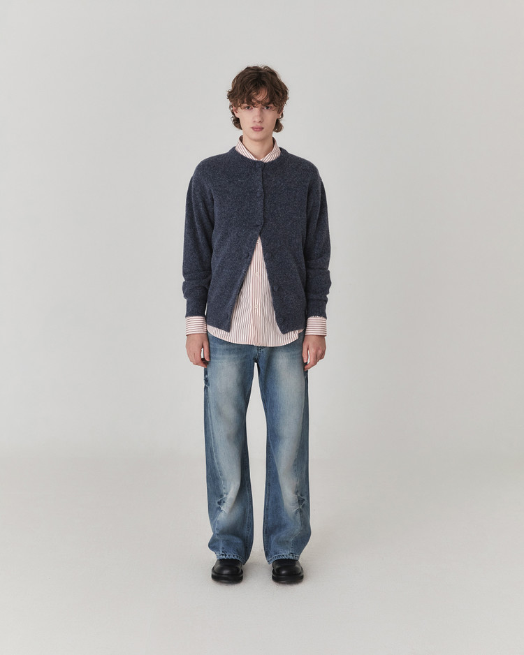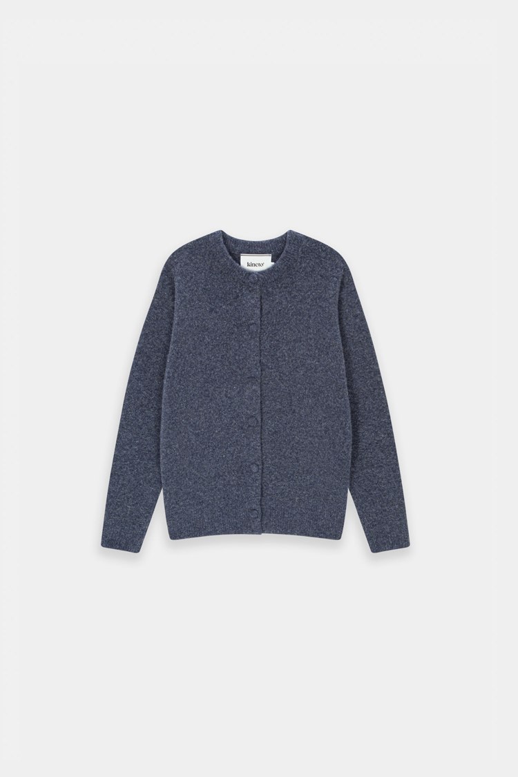 Brushed Wool Round Neck Cardigan_Ash Blue