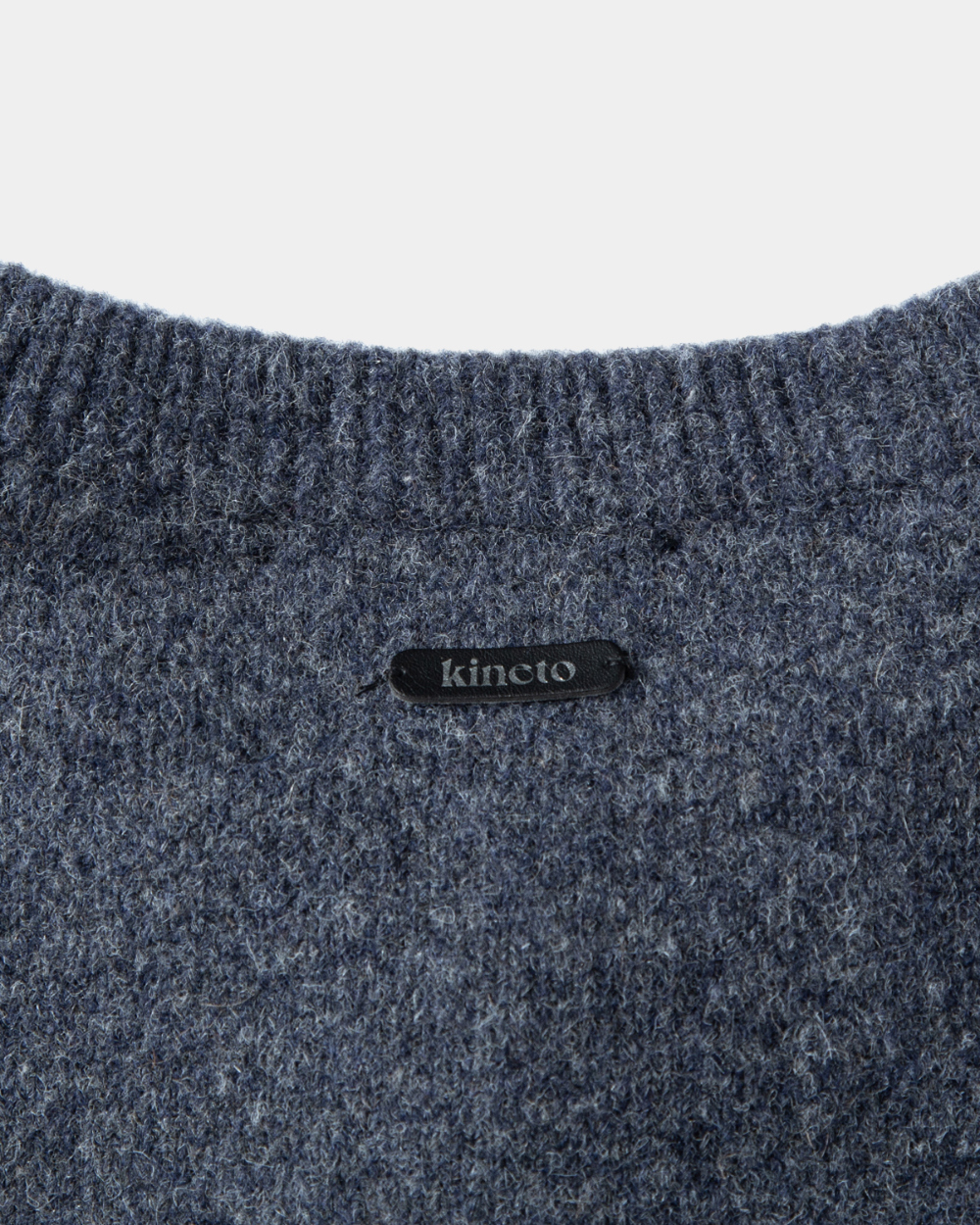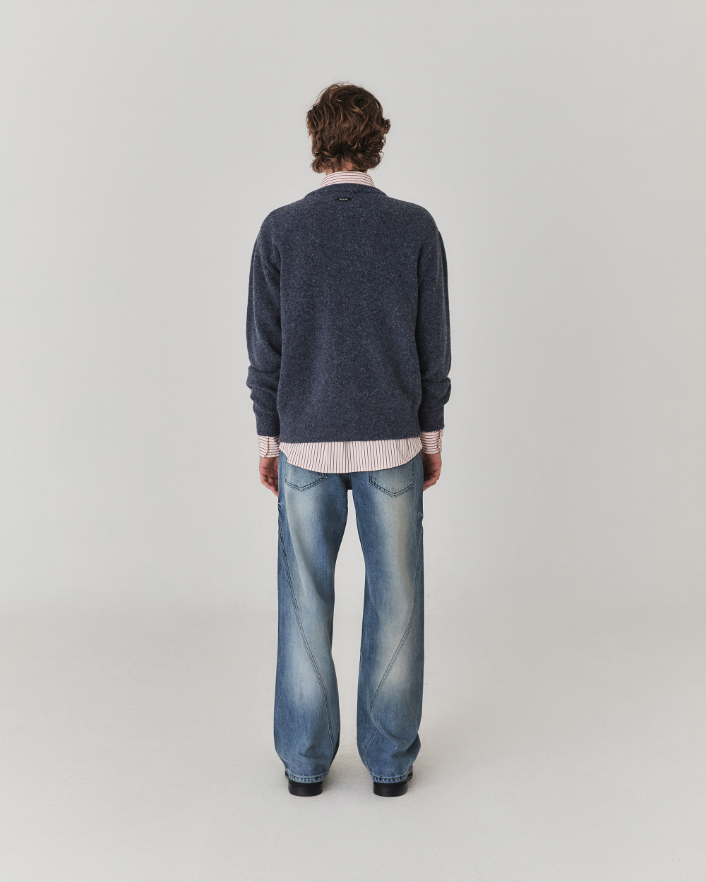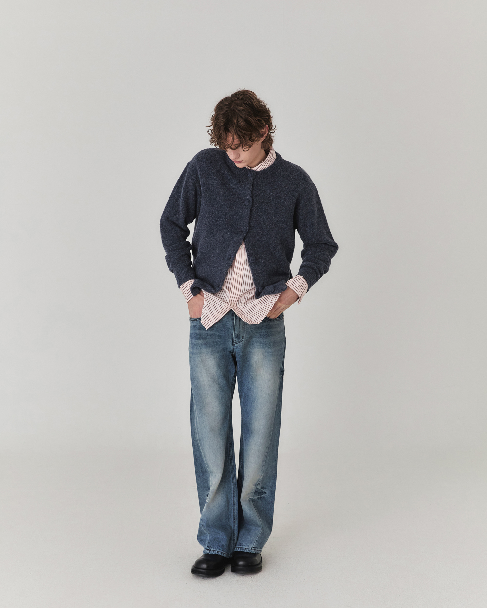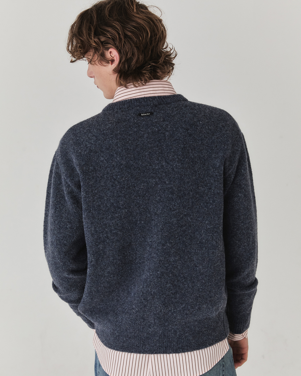 Brushed Wool Round Neck Cardigan_Ash Blue