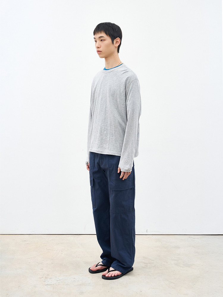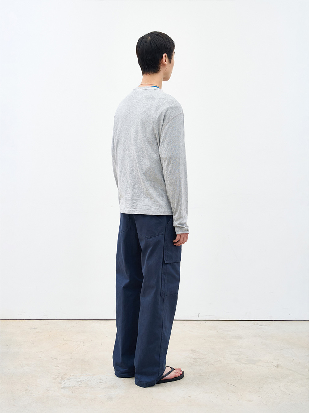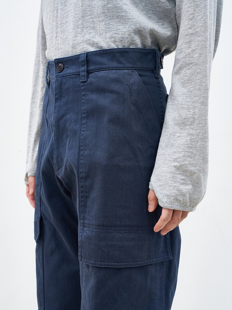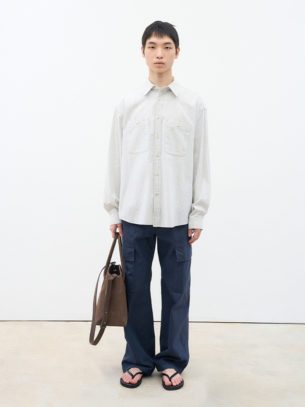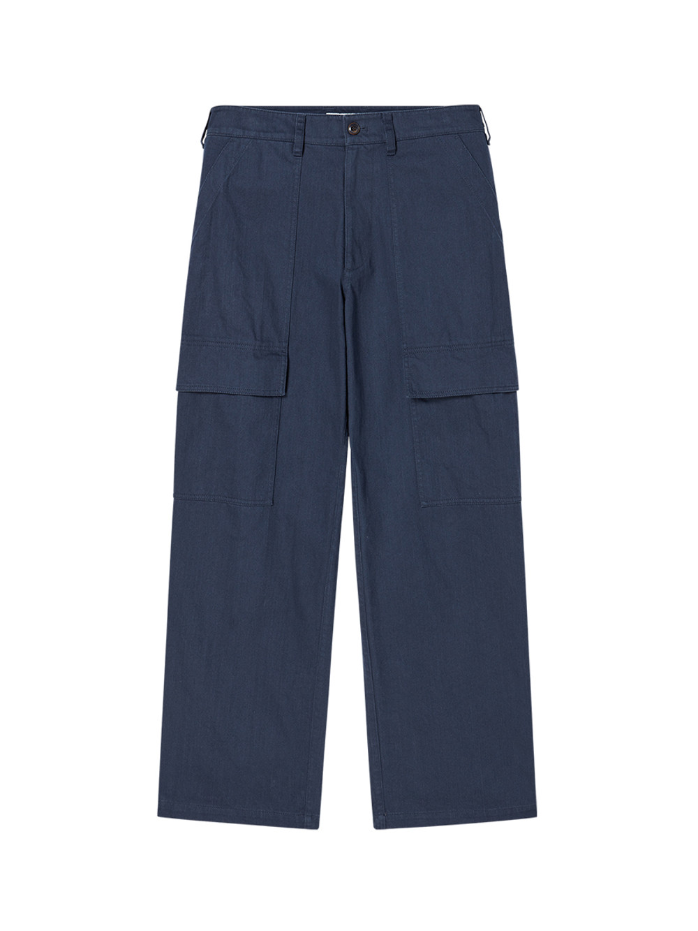위트 있는 포켓 디테일로 분위기를 전환한 퍼티그 카고 팬츠. 은은한 요철감과 빗줄기가 흐르는 듯한 독창적인 텍스처가 살아 있는 16수 슬럽 트윌 코튼 소재. 이중으로 설계된 퍼티그 포켓 구성으로 실용성과 위트를 동시에 강조한 정교한 디테일. 레귤러 핏과 자연스러운 워싱이 어우러져 다양한 스타일에 유연하게 매칭되는 입체적인 실루엣. 밀리터리의 본질적인 아카이브를 현대적인 감성으로 재해석한 아이템.