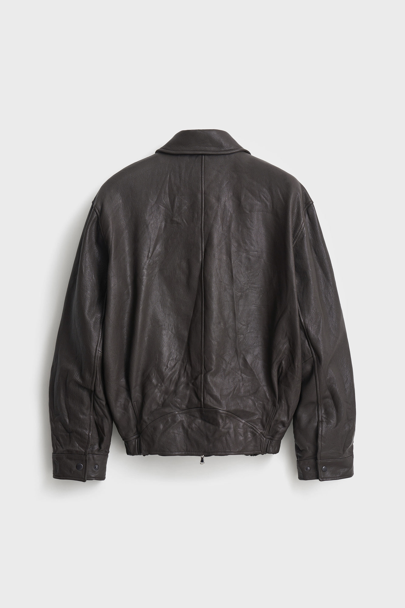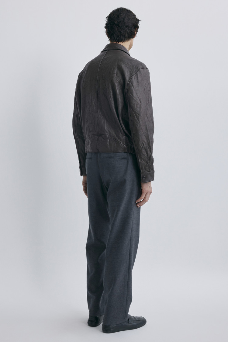 파키스탄산 고트스킨을 사용해 견고하면서도 네추럴한 표면감이 살아있는 가죽 소재입니다. 완성된 제품에 가먼트 워싱 가공을 더해 자연스러운 주름과 은은한 광택을 입혔으며, 시간이 흐를수록 더욱 멋스럽게 변화하는 에이징이 매력입니다. 안감은 뱀버그 큐프라 100%를 사용해 뛰어난 통기성과 흡습성으로 쾌적한 착용감을 선사합니다.
