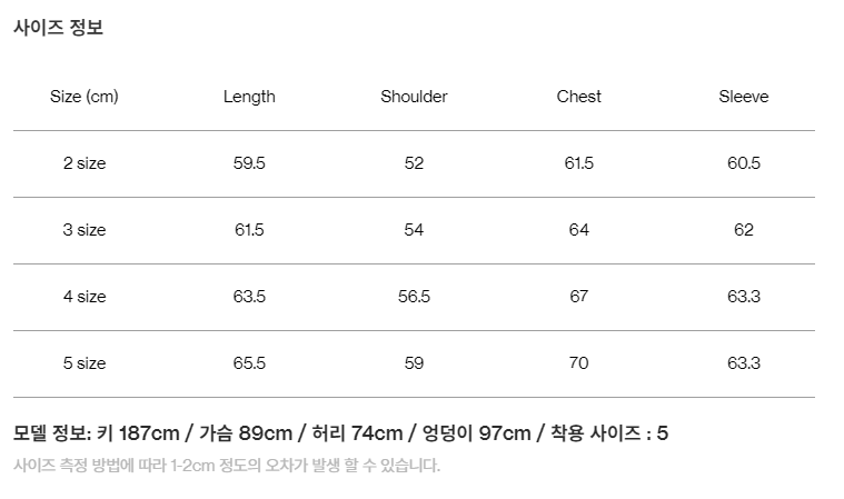 사이즈 측정 방법에 따라 오차가 발생할 수 있으며, 교환반품 사유에 해당하지 않습니다.