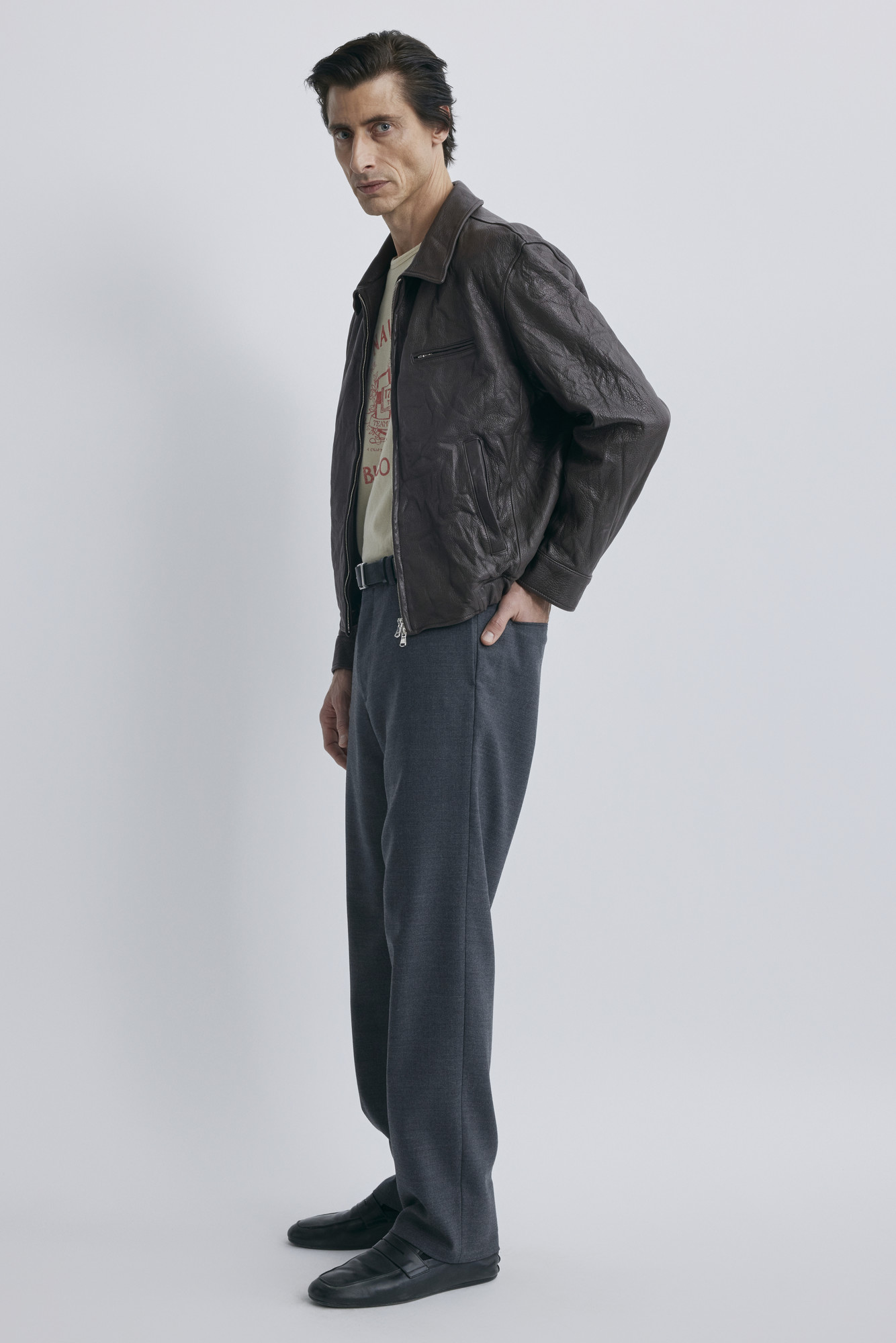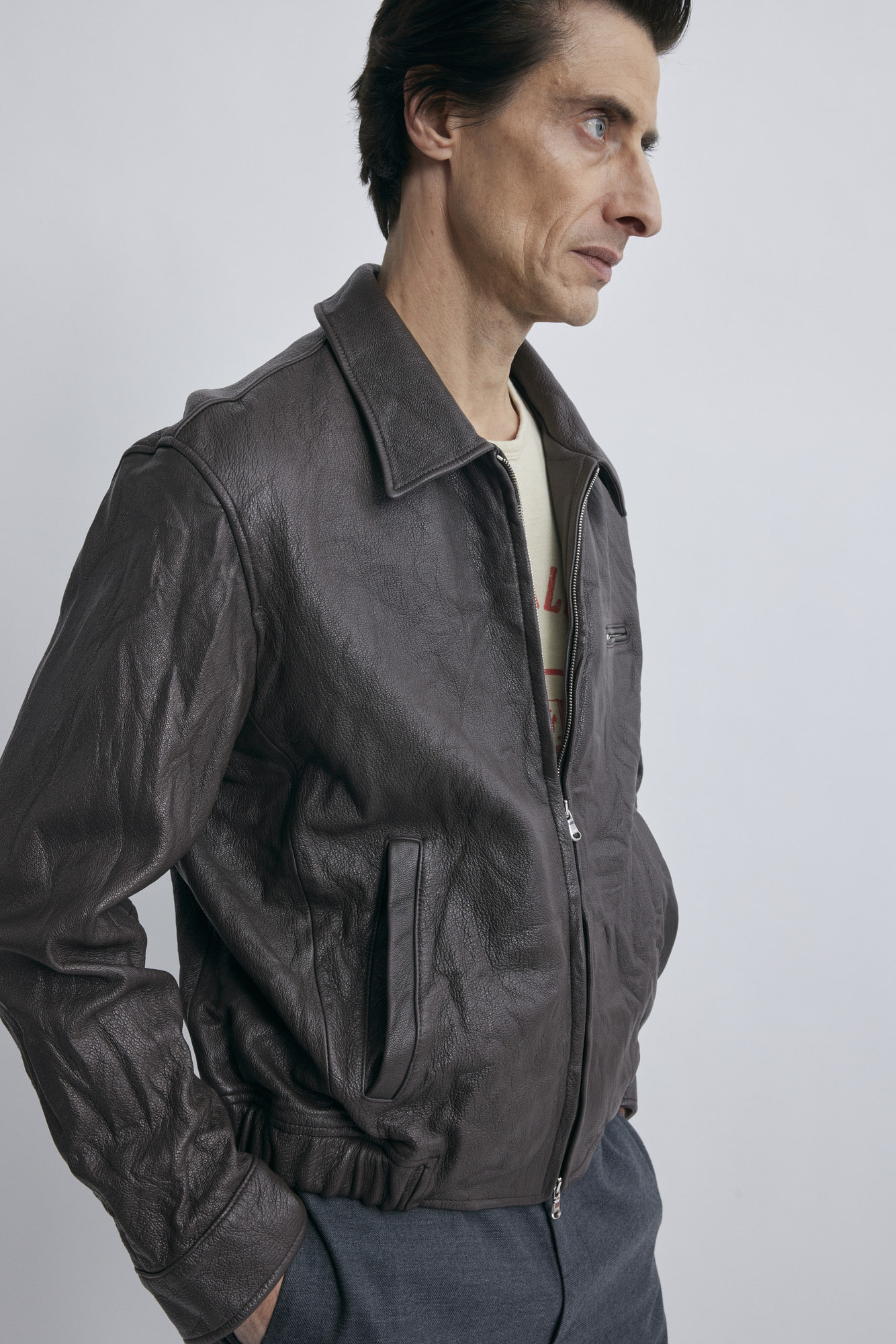 시간이 지날수록 가죽은 착용자의 체형에 맞춰 유연해지며 더욱 편안한 핏으로 변화합니다. 데님이나 캐주얼 팬츠와는 물론, 루즈한 하의와도 잘 어우러지며 계절에 따라 후디, 니트 등 다양한 이너와 함께 연출할 수 있는 유연한 가죽 아우터입니다.