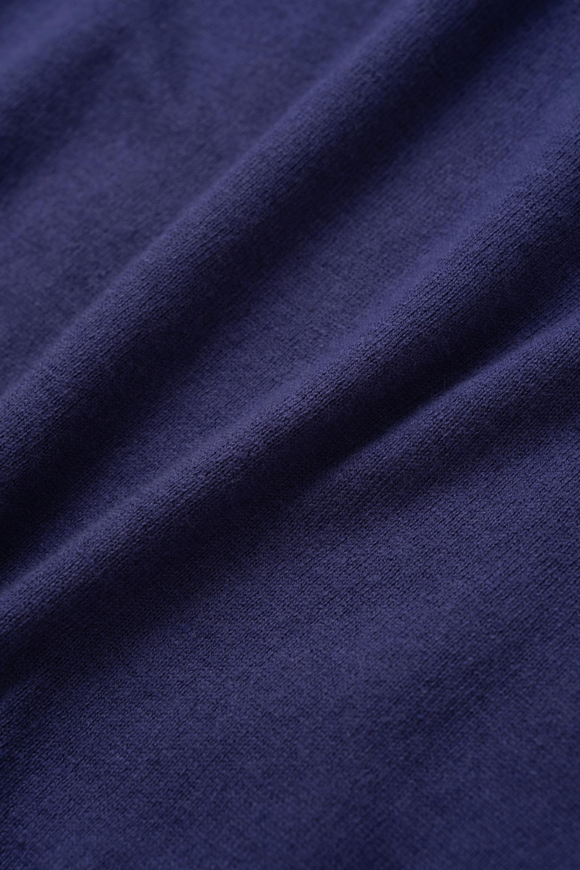 코튼, 비스코스, 그리고 실크를 혼방한 원사를 사용하여 14게이지의 얇은 골 조직으로 편직한 니트입니다.